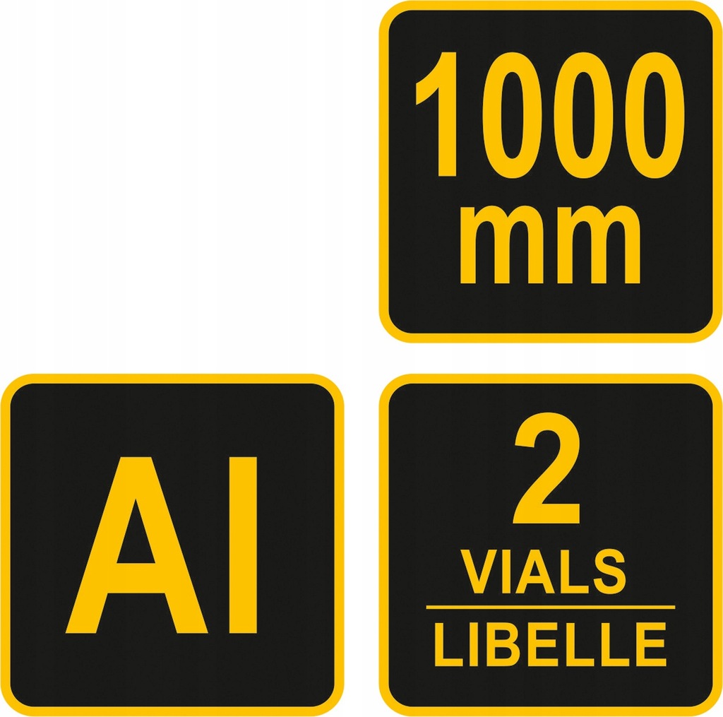 Liniał aluminiowy o długości 1000 mm , z uchwytem i dwiema libellami . Cechowany podziałką milimetrową i calową Szerokość liniału 60 mm grubość 3 mm.
