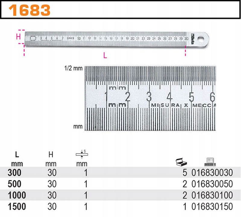 - PRZYMIAR KRESKOWY PÓŁSZTYWNY, ZE STALI NIERDZEWNEJ, MODEL 1683,1000MM: