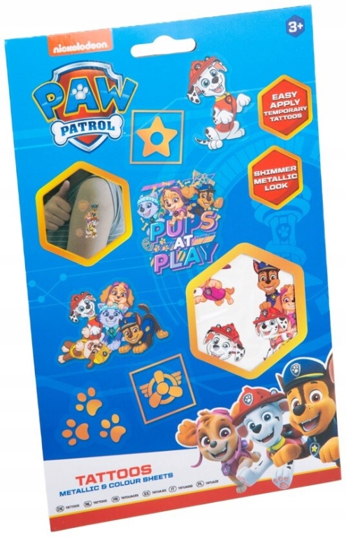 Przenieś swoje dziecięce zabawy do Zatoki Przygód z tym ekscytującym zestawem metalicznych i kolorowych tatuaży tymczasowych z motywami Psiego Patrolu! Idealny dla małych fanów bohaterskich piesków, ten zestaw pozwoli na ekspresję i zabawę, jednocześnie będąc świetnym dodatkiem do kostiumów na przyjęcia tematyczne czy zabawy w przebieranie się.