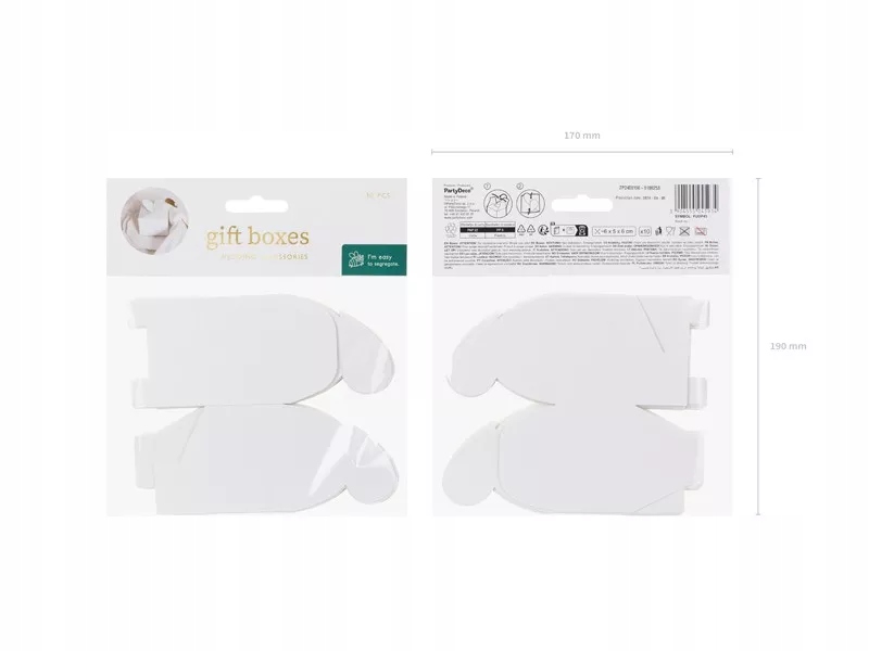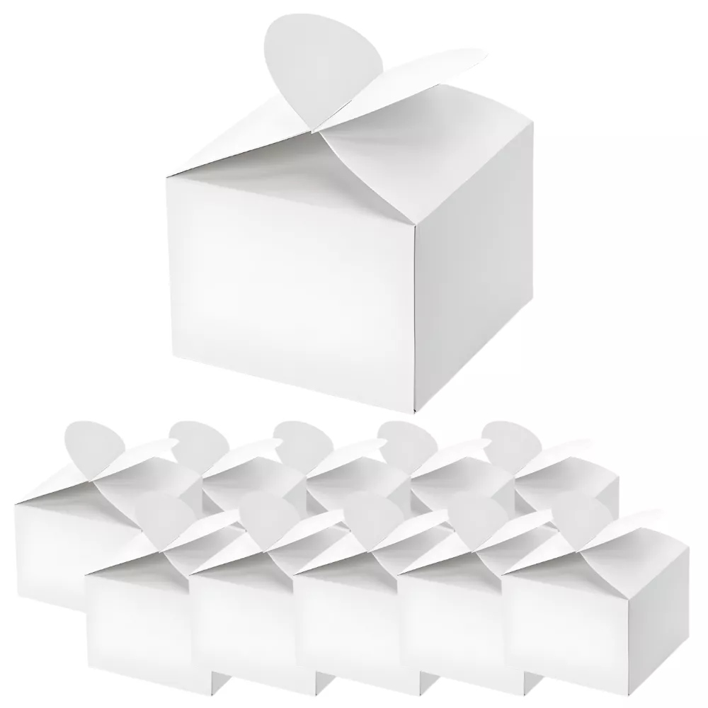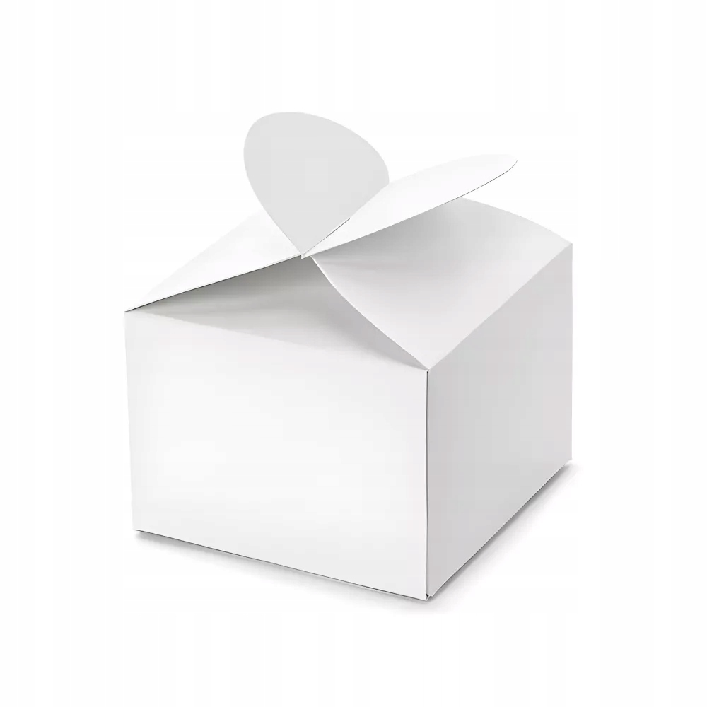 Pudełeczka w kolorze białym, z zamknięciem kształcie serca, wymiary po złożeniu ok. 6 x 5 x 6 cm(1 op. / 10 szt.)