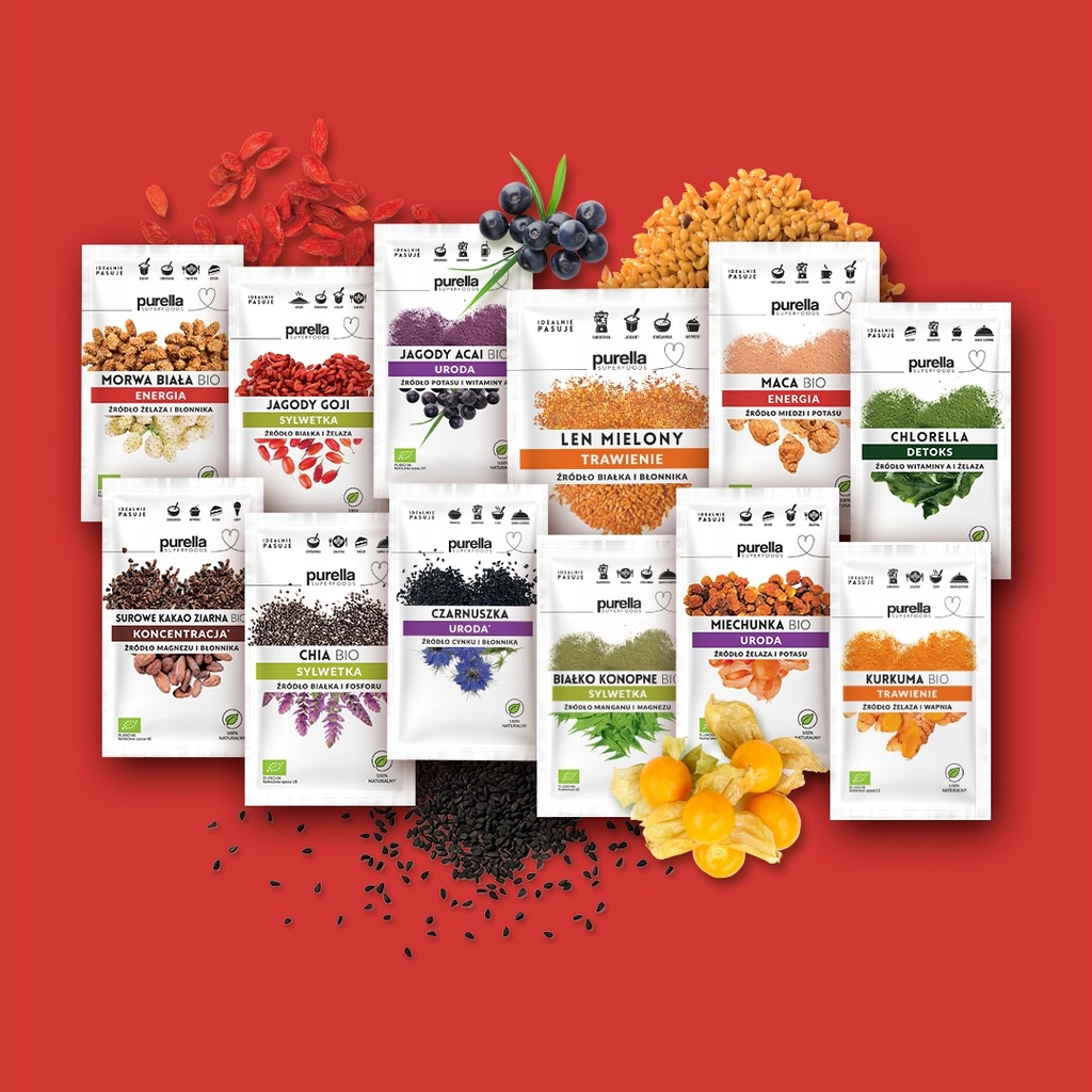 Purella Superfoods to produkty pełne cennych składników wspierających zdrowie, które wzbogacą Twoją dietę o unikalne wartości odżywcze, witaminy i minerały.