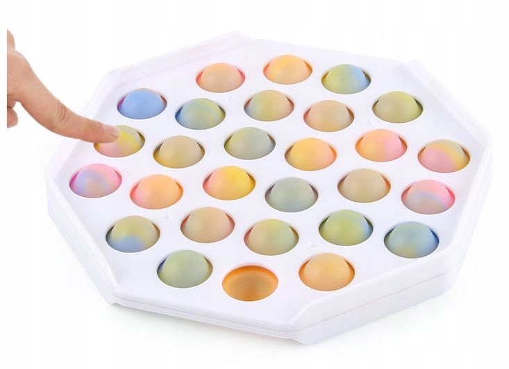 【Popraw moc mózgu i szybkość gry】 Po prostu naciśnij bańkę w dół i roztrzaskaj ją. Fidget zabawka wyda delikatny dźwięk trzaskania , wtedy gracz, który zostanie do naciśnięcia ostatniego bąbelka na planszy, przegrywa rundę. Ta gra w stylu pop it sprawi, że dzieci będą miały burzę mózgów i możesz grać w gry zgodnie z regułami lub dokładnie według reguł, które ustalisz, aby rzucić sobie wyzwanie lub szybko pojedynkować się z przeciwnikami. Następnie odwróć ją i zacznij od nowa - bez czasu na przygotowania.