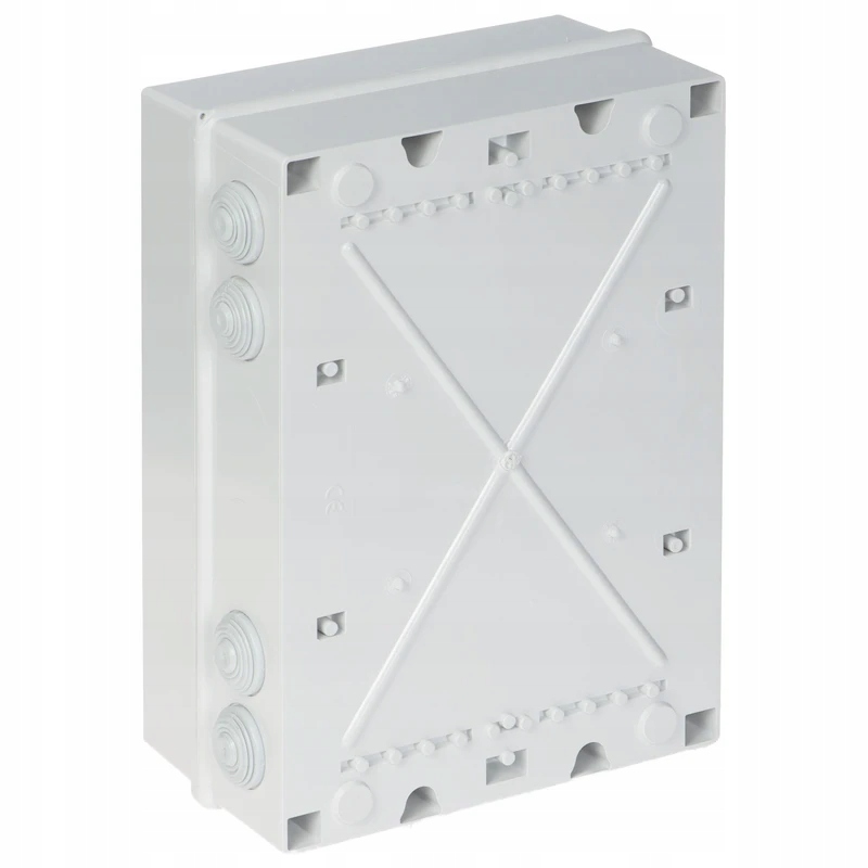Ilość przepustów: 8 szt Ø 29 mm ; Klasa szczelności: IP55 ; Materiał wykonania: Tworzywo sztuczne (ABS) ; Wymiary: 303 x 214 x 123 mm ;