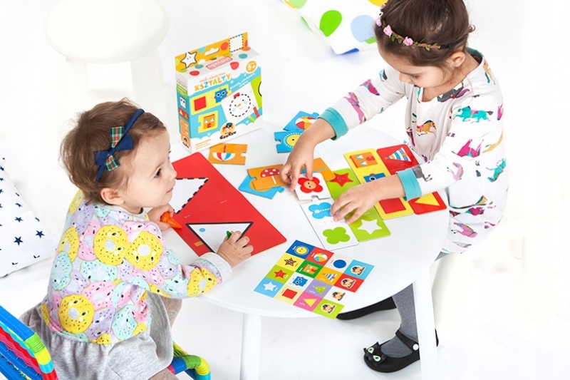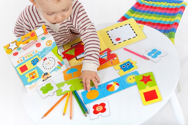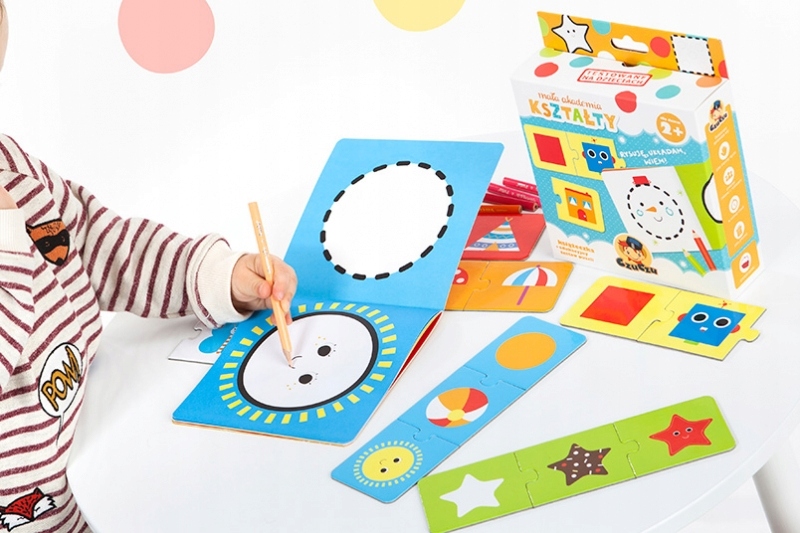 Mała akademia Kształty to książeczka do rysowania i edukacyjny zestaw puzzli.