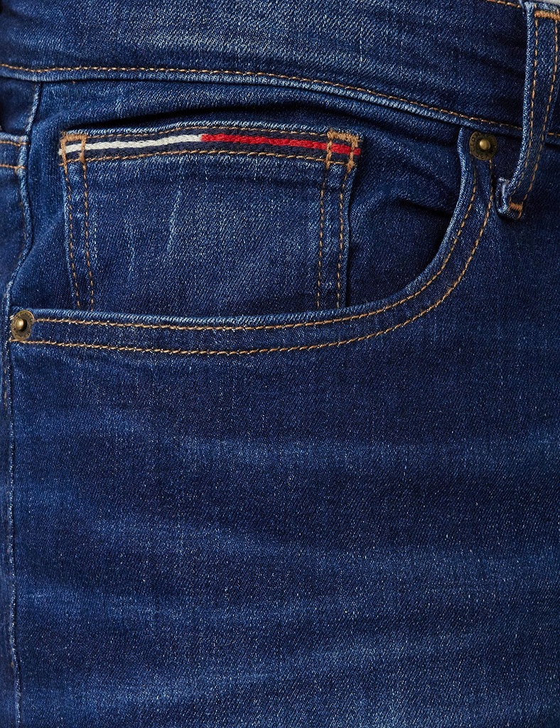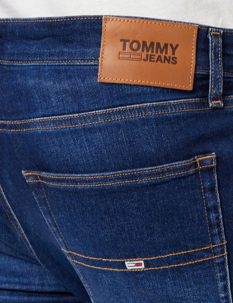 - punkt znaku wypunktowania: Elastyczny bawełniany dżins, Blaknięcie na nogach, Zamek błyskawiczny z zapięciem na guziki, Stylizacja z pięcioma kieszeniami, Tommy Jeans naszywka z flagą na kieszonce na monety, Tommy Jeans branding