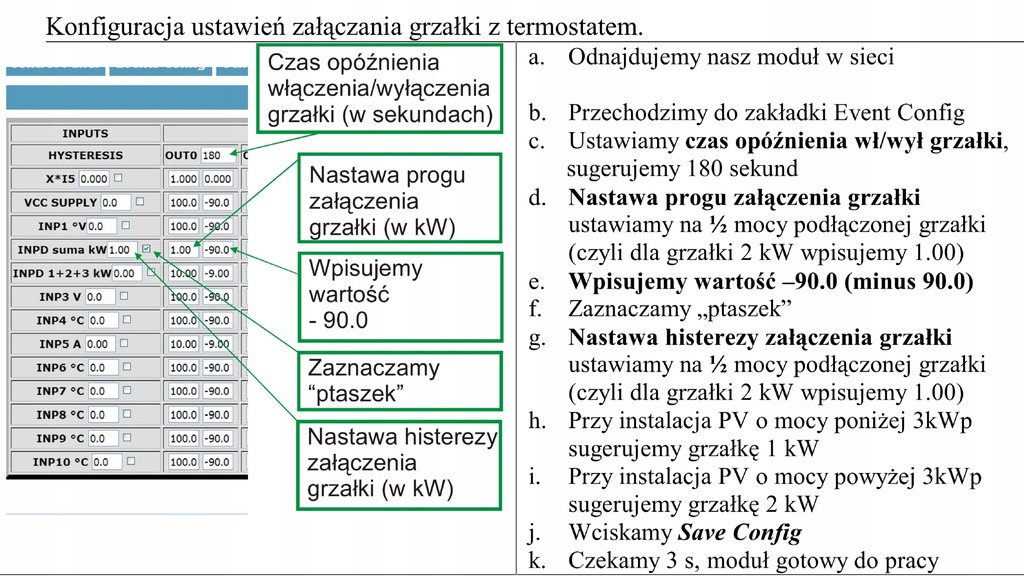 Umożliwia także załączania 0/1 dodatkowego obciążenia (np. grzałki) w momencie pojawienia się nadprodukcji z naszej instalacji PV.