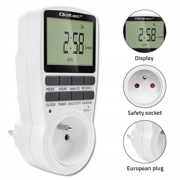 Oszczędzaj na rachunkach już dziśCzy zastanawiałeś się kiedyś, jak skutecznie obniżyć rachunki za prąd? Oszczędzanie energii w dzisiejszych czasach nie jest łatwe, ale na szczęście z pomocą przychodzi technologia. Wystarczy niewielkie urządzenie - elektroniczny programator czasowy marki Qoltec by zacząć w łatwy i skuteczny sposób zoptymalizować zużycie energii w twoim domu. Zautomatyzuj domowe urządzenia elektryczneProgramator czasowy to urządzenie, które zarządza zasilaniem elektrycznym urządzeń gospodarstwa domowego, dzięki czemu możemy znacznie obniżyć koszty zużycia energii. Jedyne co musisz zrobić to zaprogramować pracę urządzenia, ustalić dzień i godzinę jego działania, dostosowując do własnych potrzeb. Możemy podłączyć praktycznie wszystkie urządzenia elektryczne, które są zasilane napięciem 230V.Główne cechy produktu:- Alternatywny system 12/24-godzinny,- Łatwe przełączanie między czasem standardowym a letnim,- Do 10 ustawień włączania i wyłączania na dzień,- Ustawienie czasu obejmuje GODZINĘ, MINUTĘ i DZIEŃ,- Funkcja ręcznego wymuszania, aby ustawić wyłącznik czasowy na zawsze włączony lub wyłączony,- Ustawienie losowe, aby światła włączały się i wyłączały w losowych momentach np. podczas wakacji.