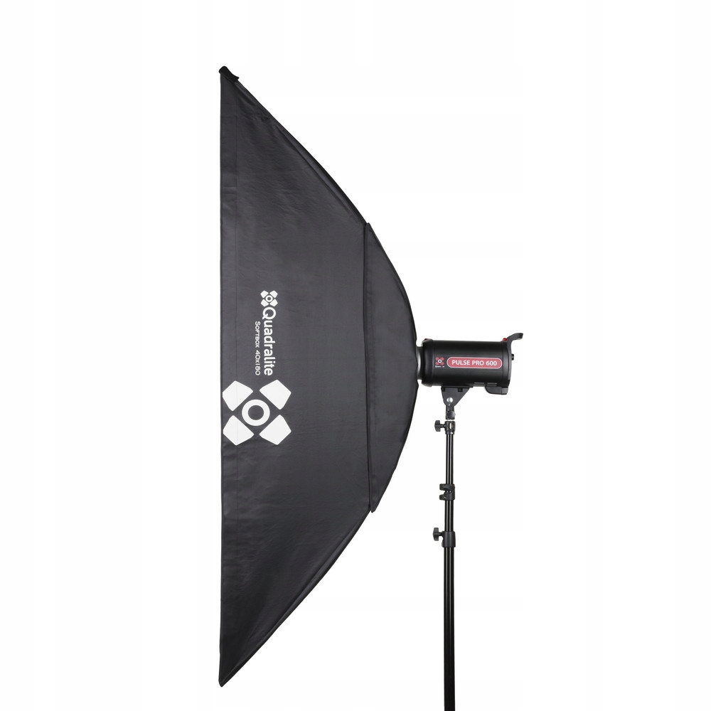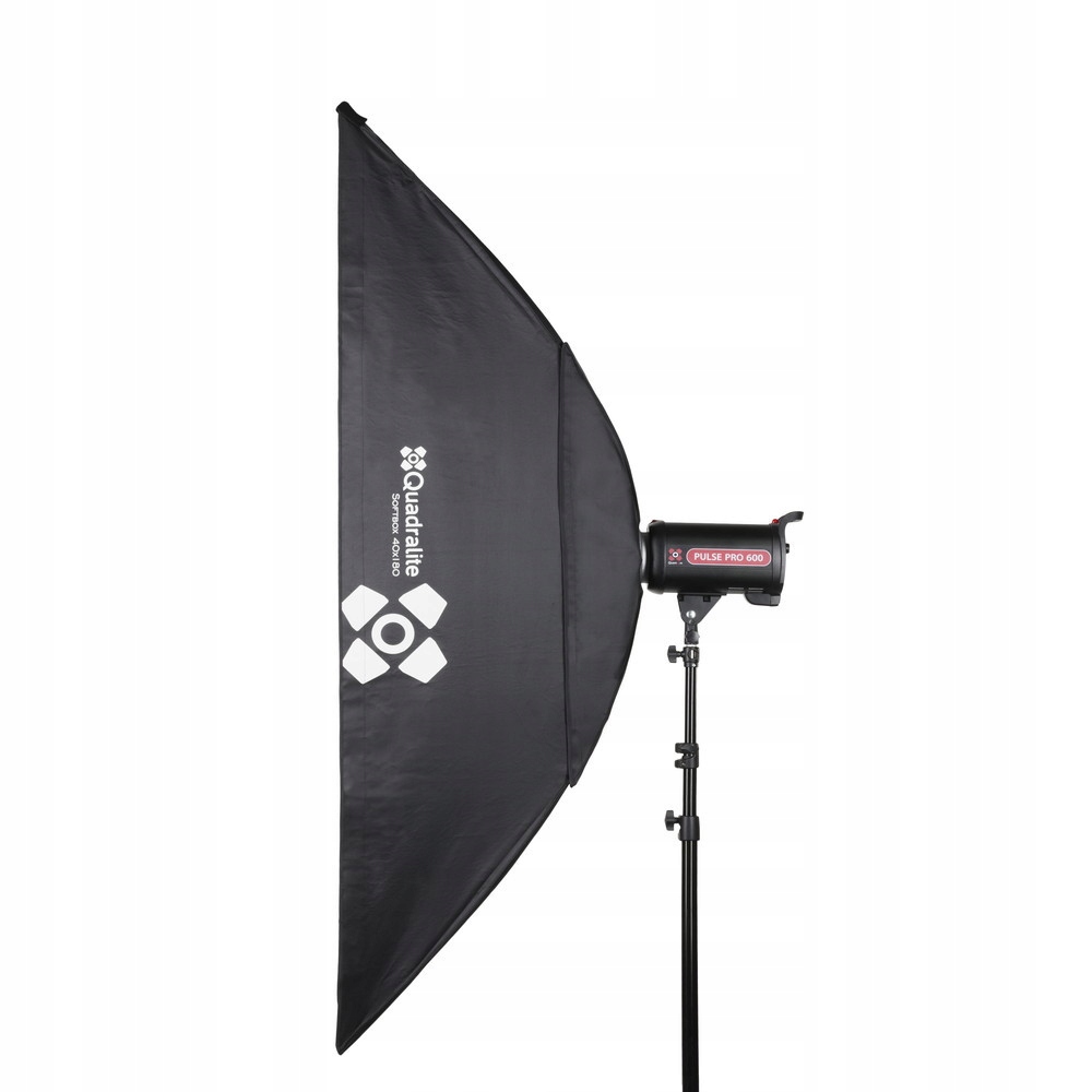 Wysokiej jakości softbox o wymiarach 180x40 cm marki Quadralite. Softbox jest wyposażony w pierścień mocowania typu Bowens, softbox posiada również dodatkowy dyfuzor.