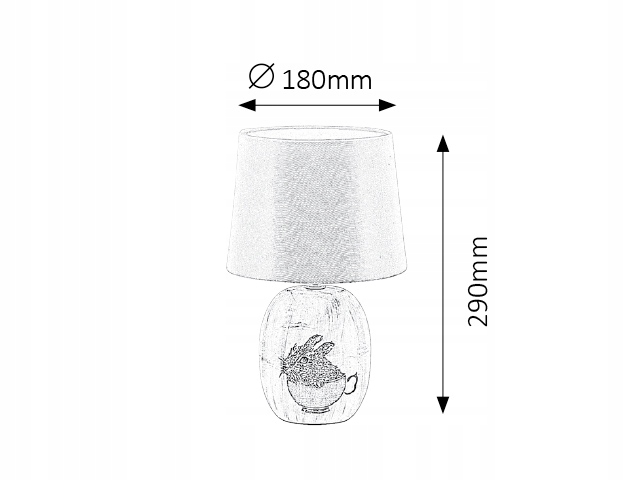 Lampa stołowa -, trzonek E14 do żarówki E14 (brak w zestawie), maks. pobór mocy 40 W, z wyłącznikiem, wtyczka, wysokość 29 cm, szerokość 18 cm, materiał: ceramika, IP20