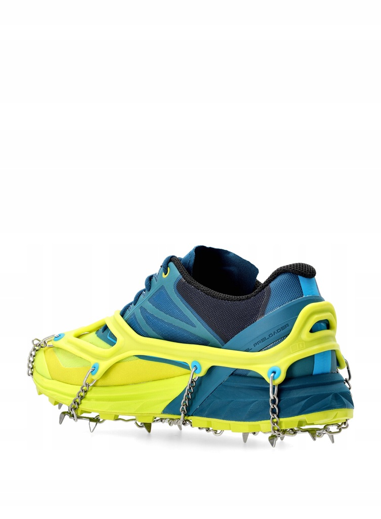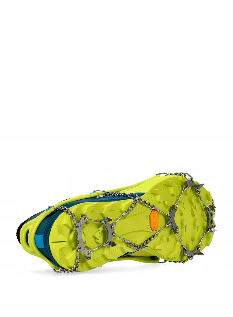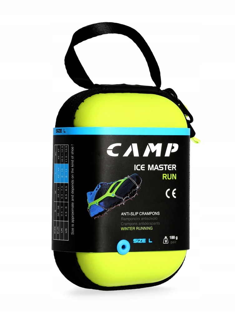 Raczki biegowe Camp Ice Master Run cechują się niską wagą i dużą wytrzymałością. Znajdziesz w nich 13 kolców ze stali nierdzewnej, o średnicy 8 mm. System wiązań raczków powstał z lekkiego elastomeru, który zapewnia doskonałe dopasowanie do butów i dobrze otacza całą stopę. Producent zastosował w nich także zintegrowaną zakładkę, która ułatwi zakładanie ich, a wytrzymałe łańcuchy łączące całą konstrukcję zapewnią dobre czucie terenu podczas biegu. Raczki dostępne są w 4 rozmiarach, a każdy z nich produkowany jest w innym kolorze.