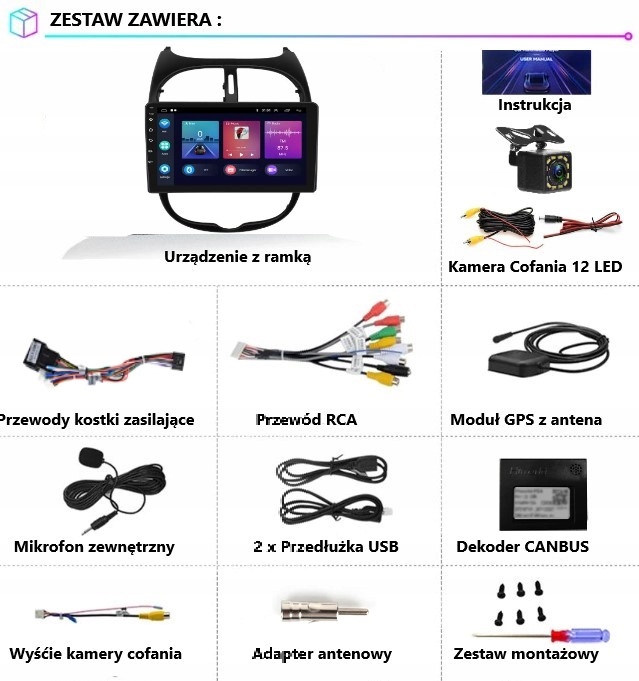 - (Pakiet zawiera kamerę 12 LED z trybem nocnym i przedłużka)