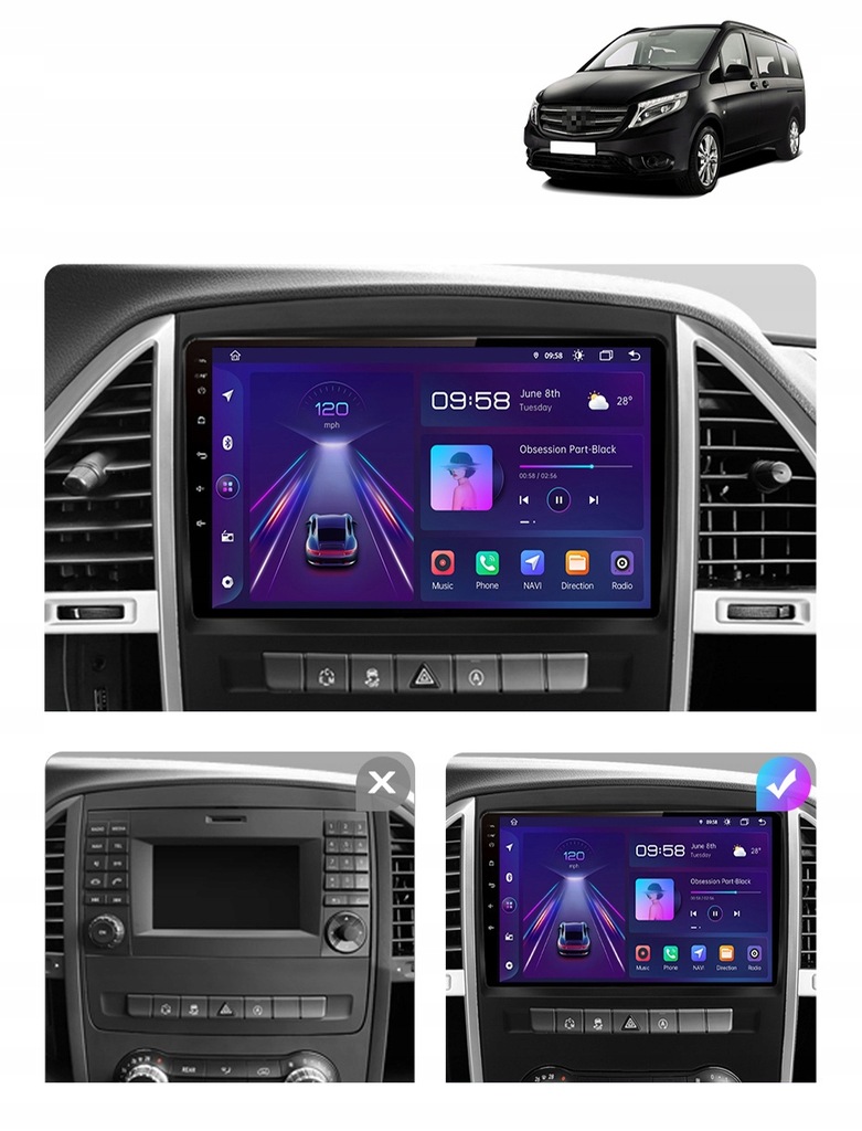 Radio Android 12 do Mercedes Vito W447 2014-2020 10" CarPlay Kamera