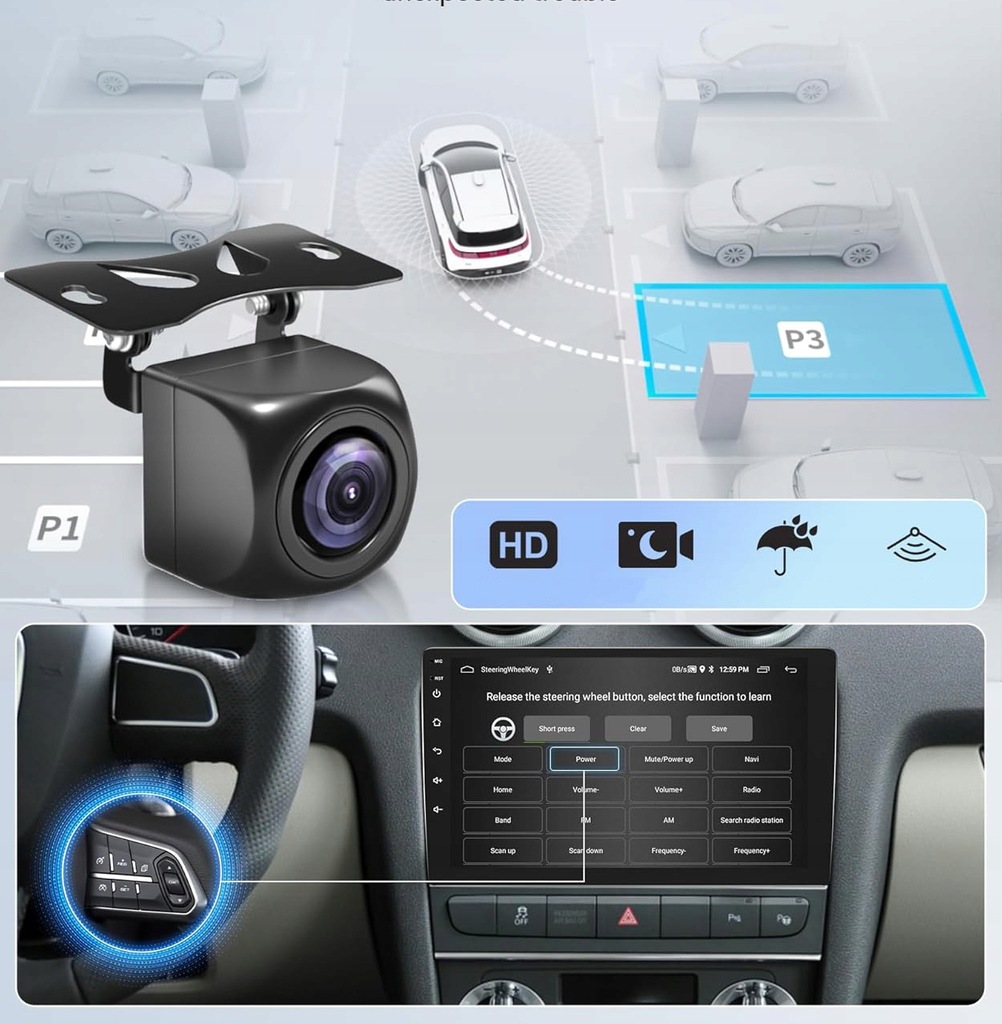 Wbudowany Bluetooth pozwala na bezprzewodowe połączenie z telefonem, co umożliwia bezpieczne rozmowy i odtwarzanie muzyki. Radio wyposażone jest również w FM/RDS, z 18 zaprogramowanymi stacjami radiowymi, zapewniając dostęp do ulubionych audycji i muzyki. Dodatkowo, obudowa radia wspiera kamera AHD, automatycznie wyświetlając obraz podczas włączania biegu wstecznego, co zwiększa bezpieczeństwo podczas manewrowania. Urządzenie umożliwia także sterowanie za pomocą kierownicy, co podnosi komfort korzystania podczas jazdy.