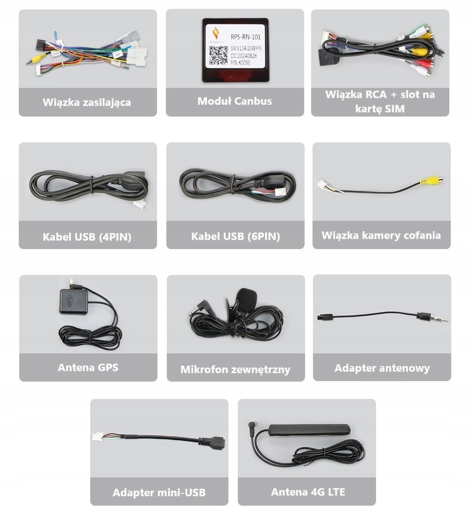➡️ Kable RCA + slot na kartę SIM