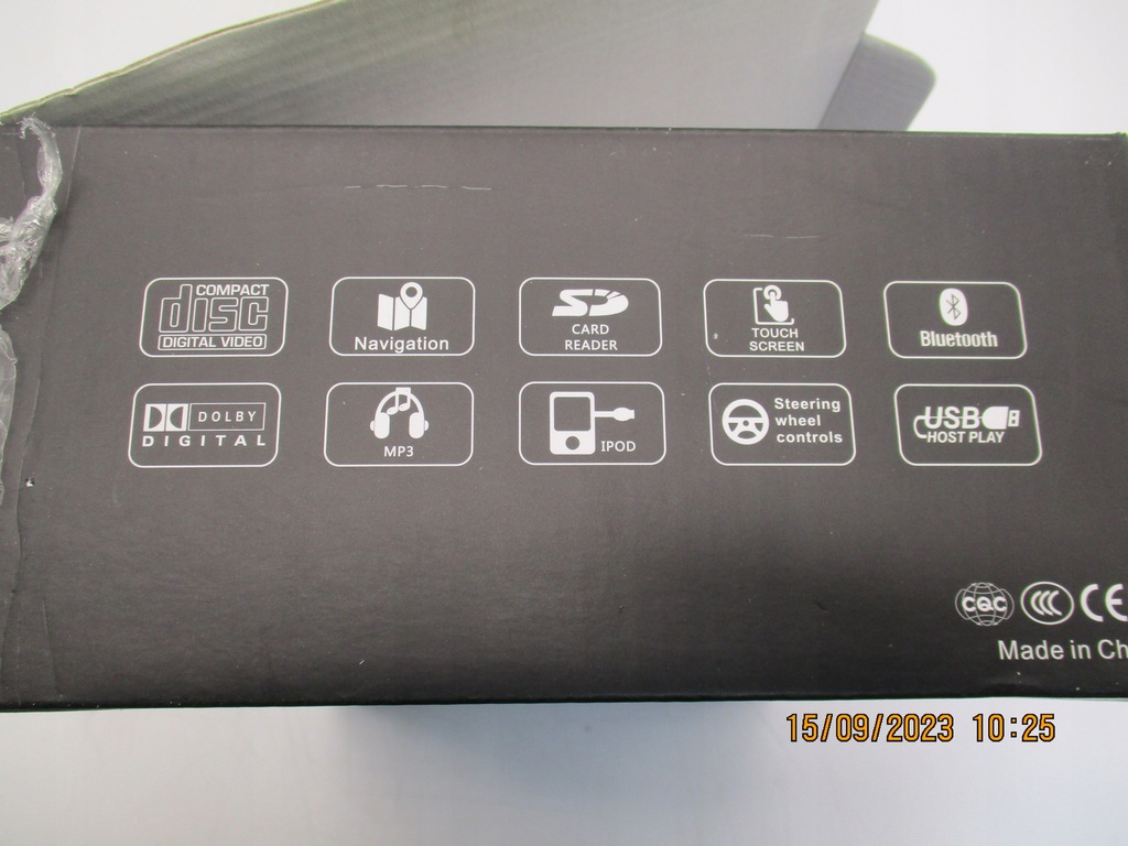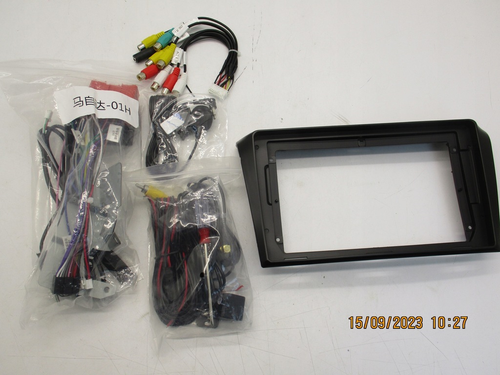 Radio wraz okablowaniem instrukcją, kamerą cofania, mikrofonem i adapterem do deski rozdzielczej niestety nie wiadomo do jakiego samochodu.