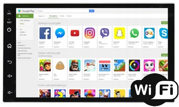- RADIO PRACUJE NA SYSTEMIE ANDROID DZIĘKI CZEMU DAJE WIELE MOŻLIWOŚCI, INSTALOWANIE APLIKACJI, GIER, NAWIGACJI.