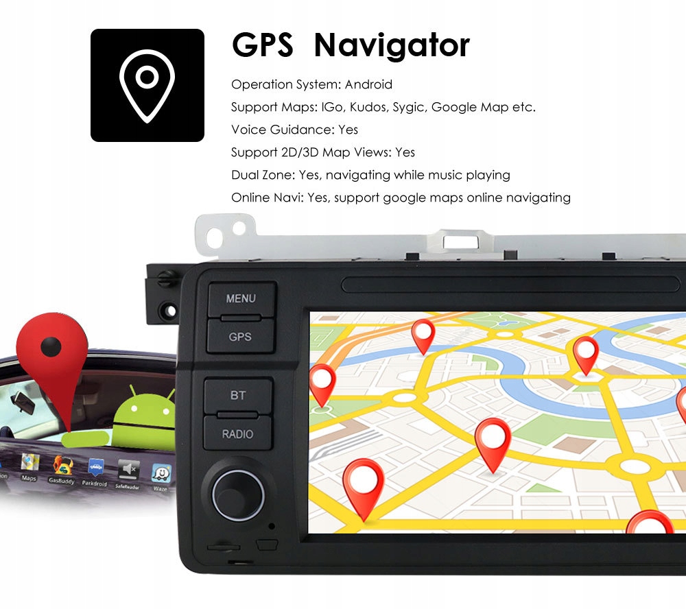 - Radio w 100% kompatybilne z samochodami marki BMW, nie trzeba kombinować i lutować przewodów, wystarczy odpiąć stare radio i podłączyć nowe!