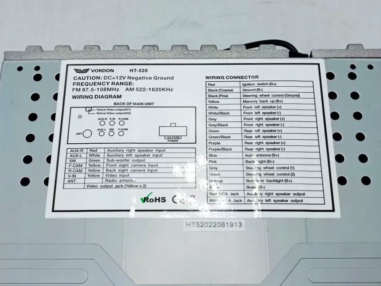 W zestawie: RADIO SAMOCHODOWE VORDON HT-520 EKRAN ANDROID MP3/USB/SD/AUX BLUETOOTH
