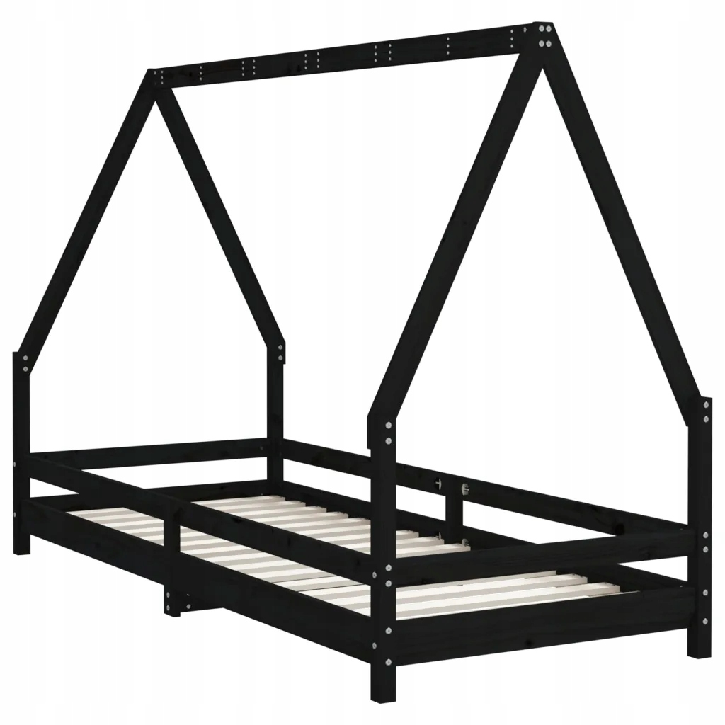 Rama łóżka, czarna, 90x200 cm, lite drewno sosnowe