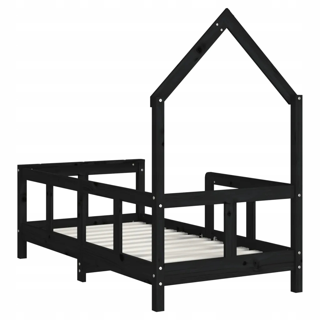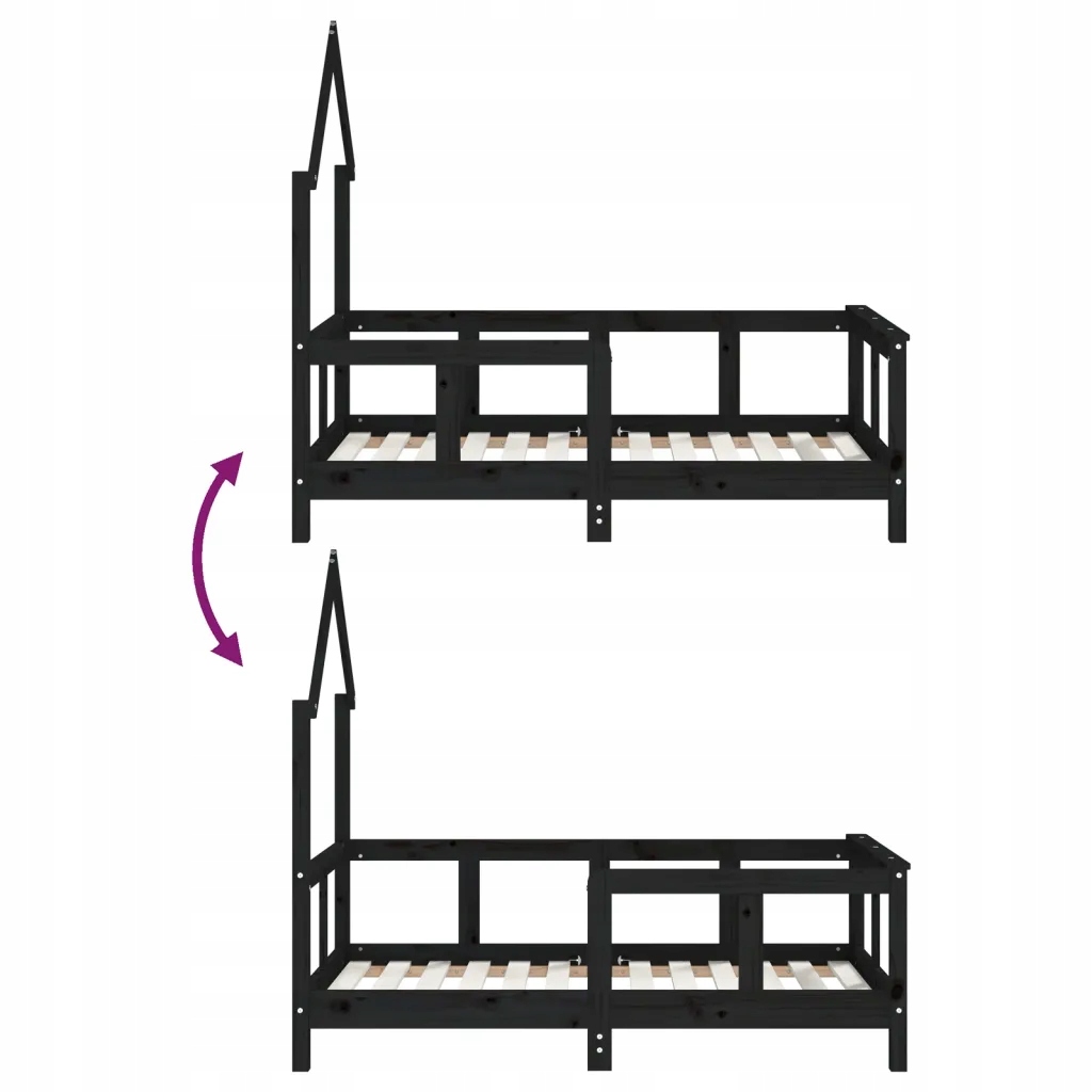 Rama łóżka dziecięcego, czarna, 70x140 cm, drewno sosnowe