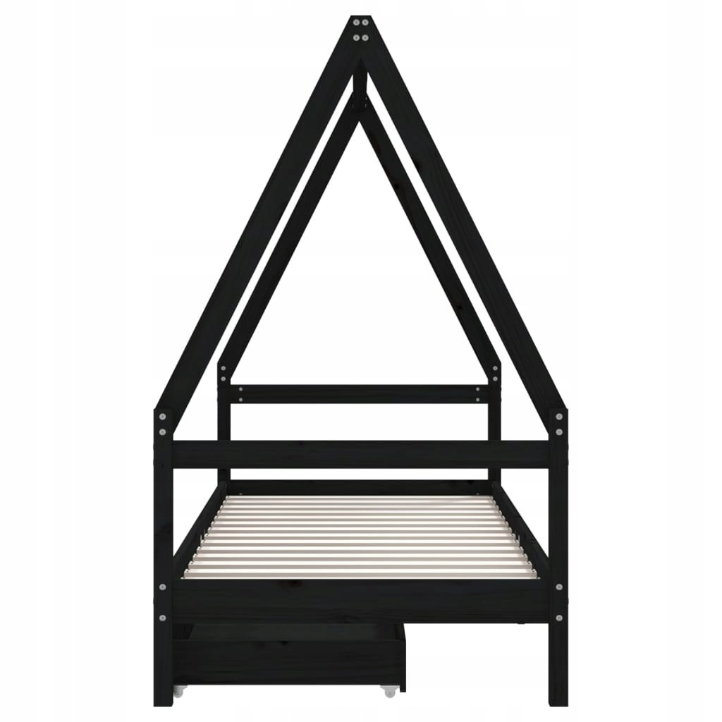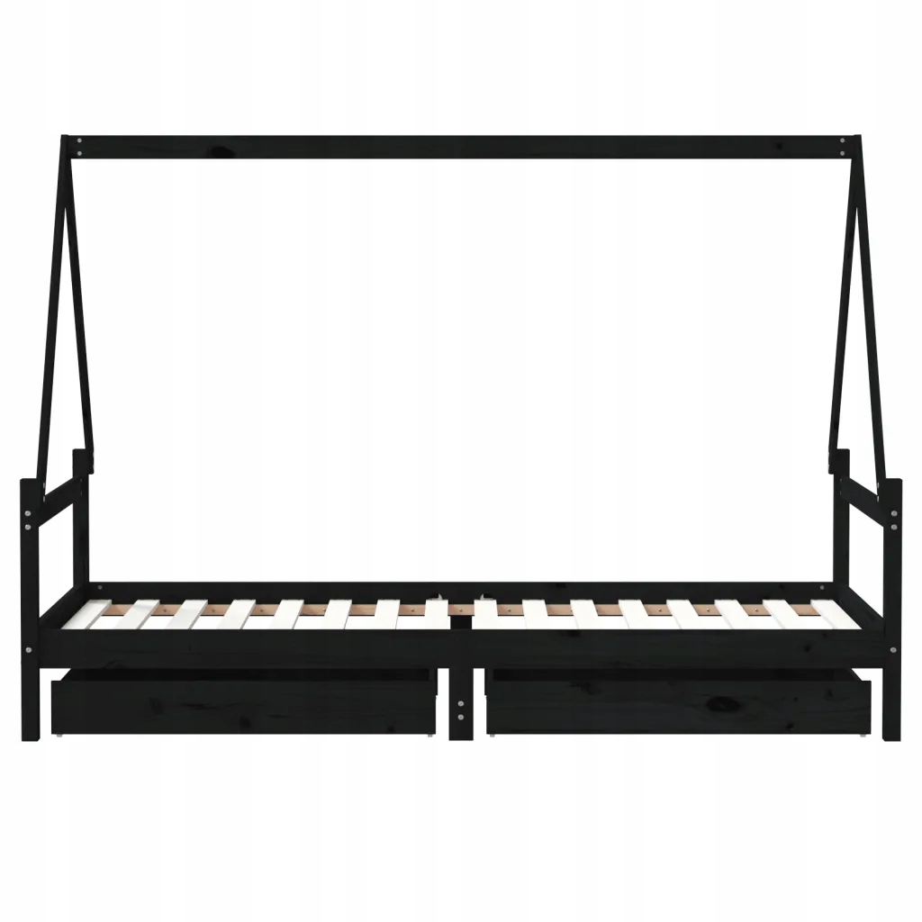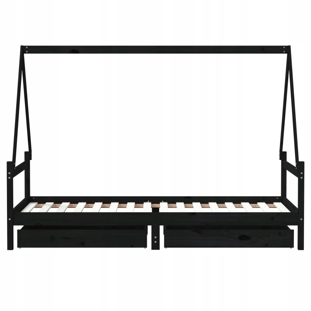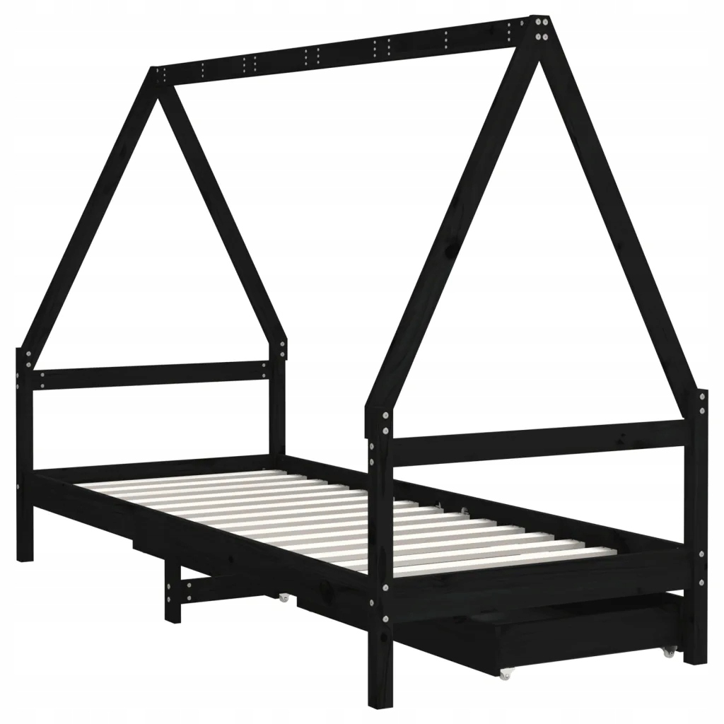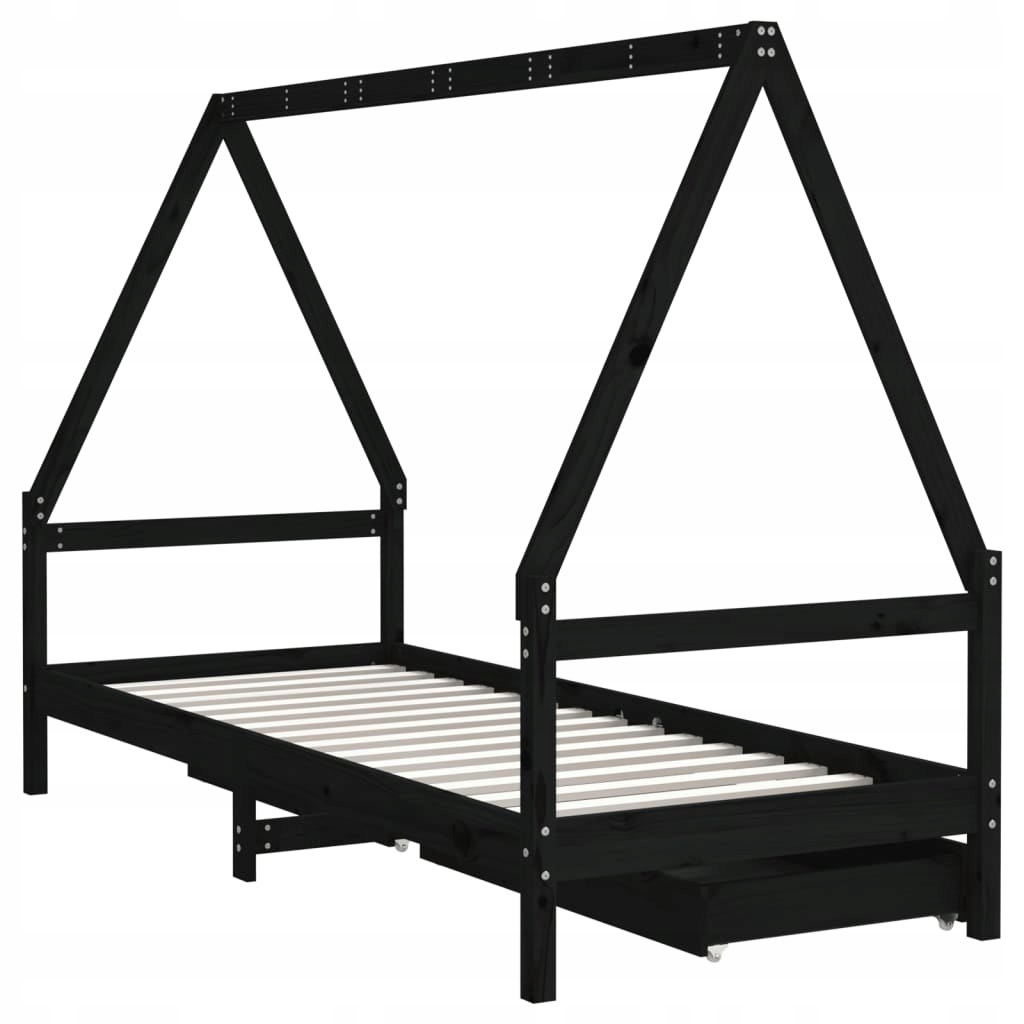 Rama łóżka dziecięcego z szufladami, czarna, 80x200 cm, sosnowa
