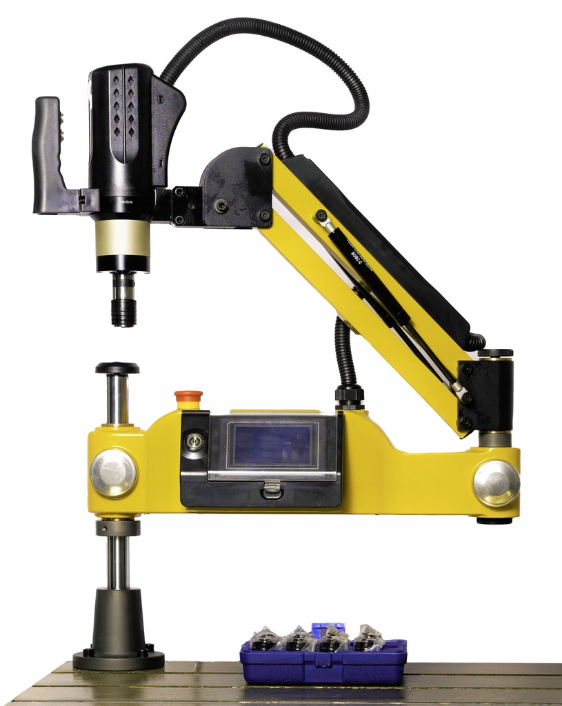 -Dedykowany dla ramion gwintujących: w rogu oryginalne miejsce dla kolumny ramienia. Nadaje się również pod inne maszyny jak wiertarki itp.