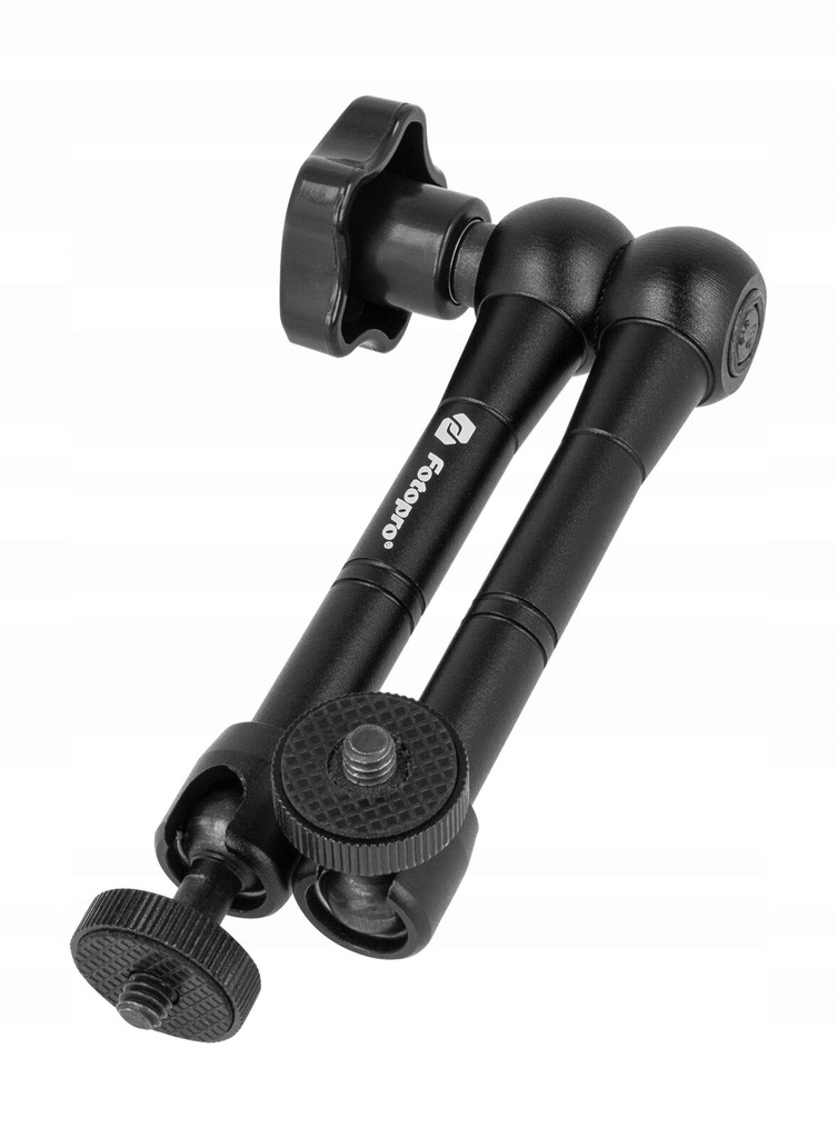 Fotopro Magic Arm to uniwersalne ramię montażowe o długości 24 cm służące do mocowania różnego rodzaju akcesoriów, lamp, monitorów podglądowych, mikrofonów do uchwytów video i nie tylko. Magic Arm umożliwia rozbudowę zestawu foto-video o kolejne elementy w wygodny i funkcjonalny sposób.
