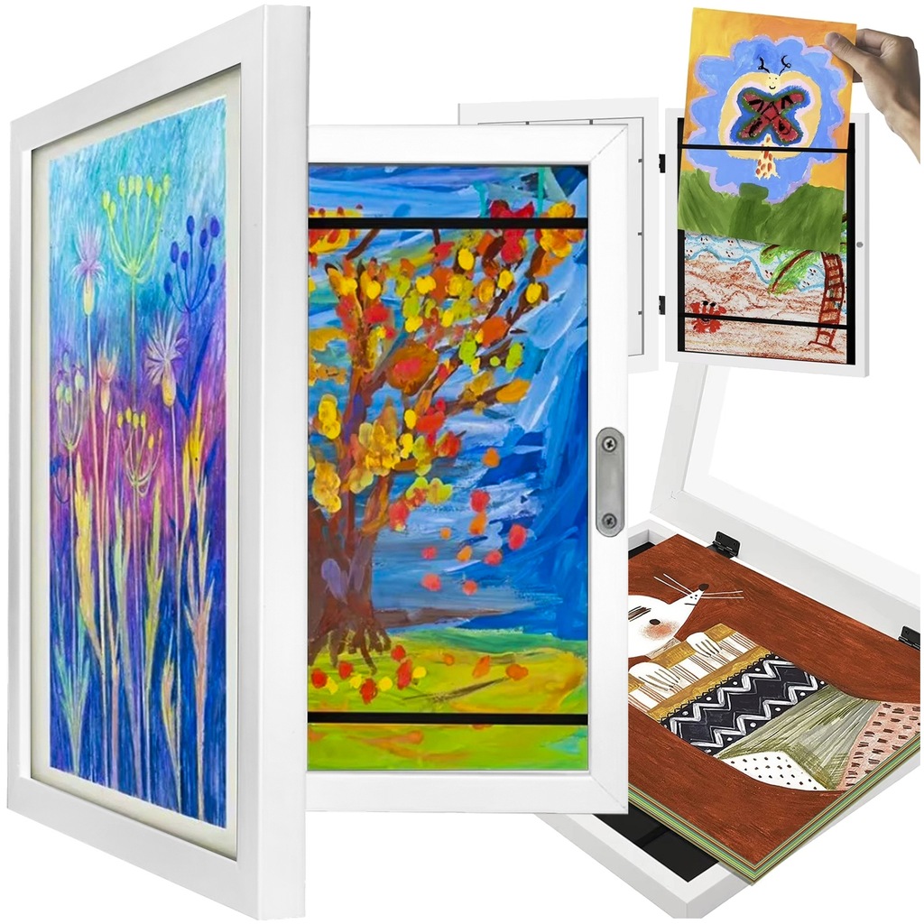 Ramka artystyczna na obrazki dzieci otwierana, A4 pojemnik na 150 prac!