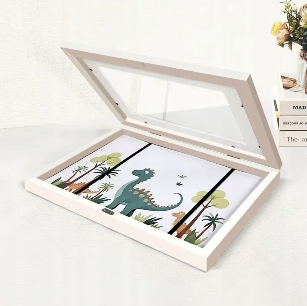 Ramka na rysunki i zdjęcia dziecięce nie tylko eksponuje dziecięce dzieła, ale także bezpiecznie przechowuje je w jednym miejscu, umożliwiając łatwą i regularną wymianę prac.