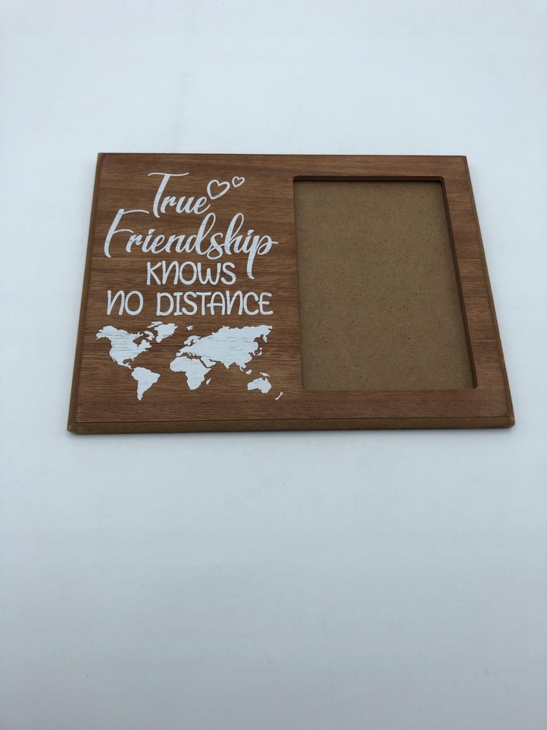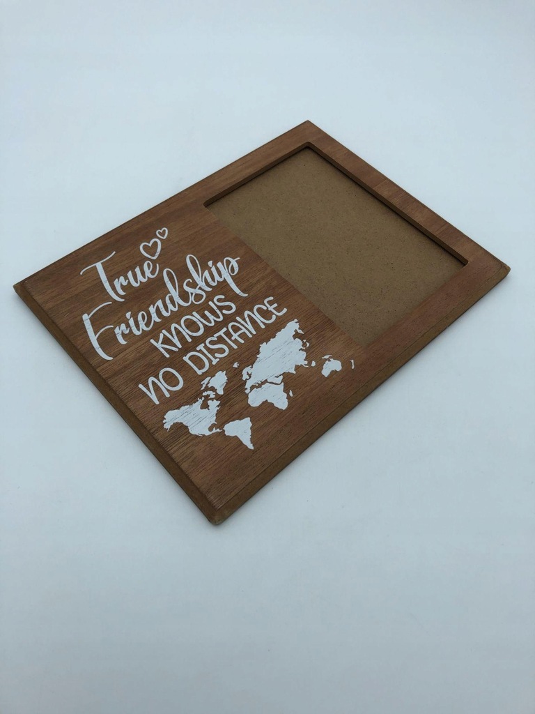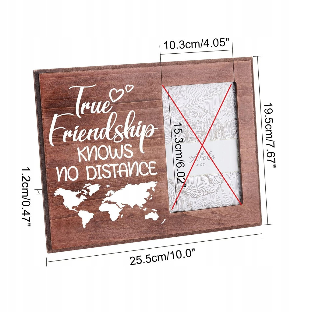 【Unikalny projekt】 Na ramce nadrukowano napis „Prawdziwa przyjaźń nie zna odległości” oraz mapę świata i wzory serc. Czerwono-brązowy wygląd w połączeniu z białym tekstem i białymi wzorami jest klasyczny i piękny, co czyni go idealnym prezentem dla kolegów z klasy i przyjaciół.