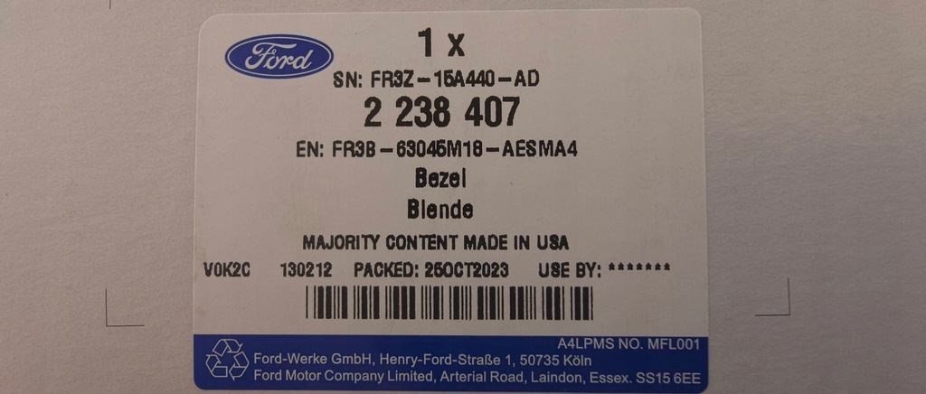 2238407 _ FR3B-63045M18-AESMA4 _ FR3Z15A440AD