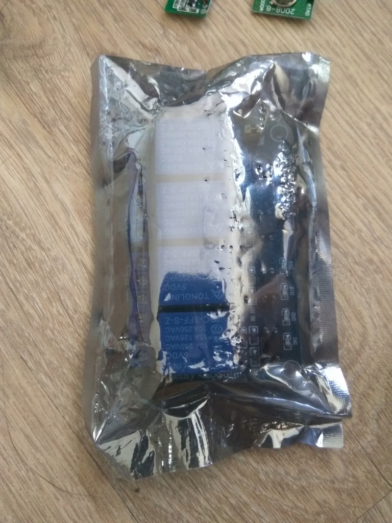 W zestawie jest komputerek w dedykowanej obudowie , zasilacz 2A z kablem ( tu rewelacji nie ma ;)) płytka z 4 -ma przekaźnikami 10 A jeszcze nierozpakowana oraz moduł radiowy.