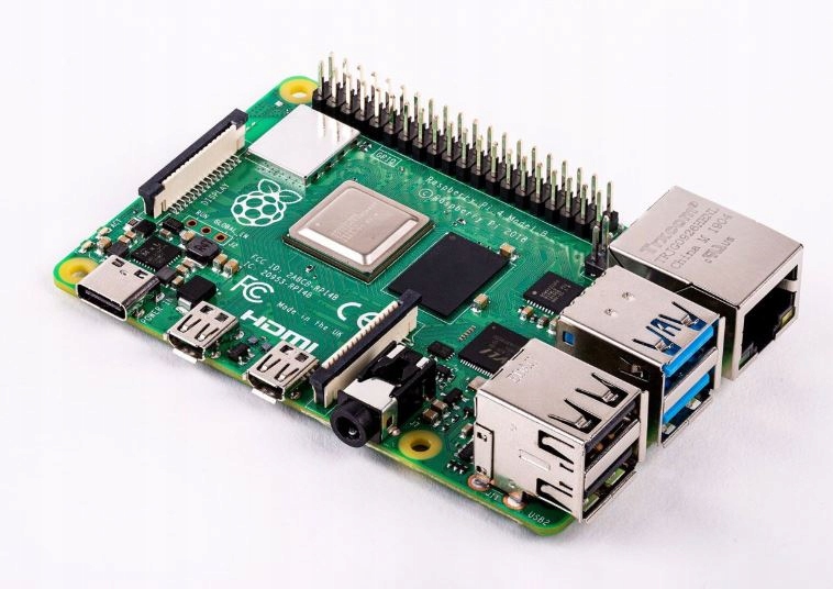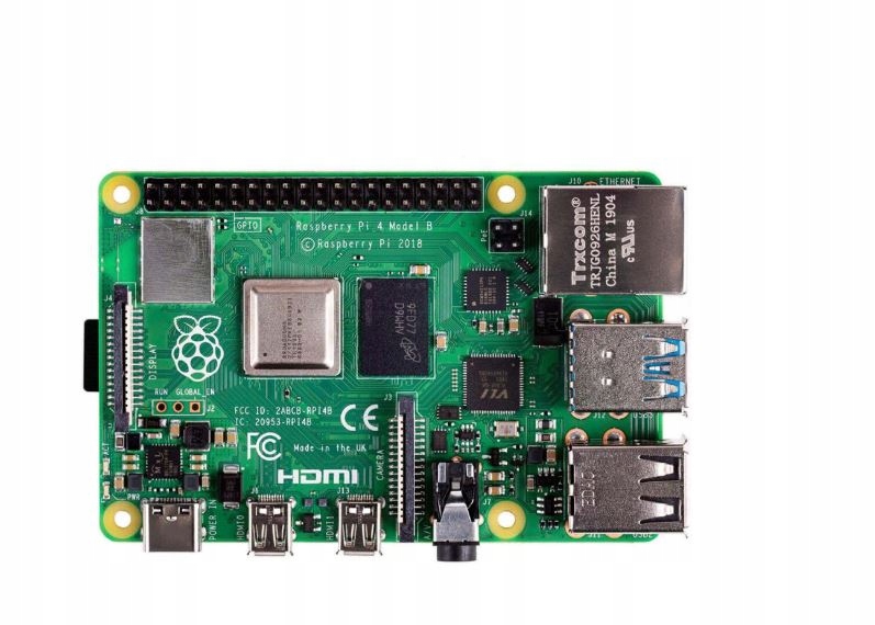 Raspberry Pi w wersji 4 Model B z 4 GB pamięci RAM. Model wyposażony w dwa złącza microHDMI, dwa złącza USB 3.0 i 2 złącza USB 2.0 oraz złącze zasilania USB C. Posiada również dwuzakresowe WiFi 2,4 GHz i 5 GHz, Bluetooth 5 / BLE, port Ethernet o prędkości do 1000 Mb/s oraz opcję zasilania przez PoE, 40 złącz GPIO (2x20 pin, raster: 2,54), złącze microSD do podłączenia karty pamięci, złącza CSI i DSI, które pozwalają na rozszerzenie o kamerę oraz wyświetlacz, 4 otwory montażowe.