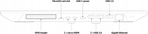 Mini PC - Quad-Core Cortex-A72 1.8 GHz 64bit ARM, 4GB LPDDR4 RAM, H.265/H.264, grafika OpenGL ES 3.0, Wi-Fi 802.11 b/g/n/ac Dual-band, Bluetooth 5.0, 2x USB 3.0, 1x USB 2.0, USB-C, 2x micro-HDMI, slot microSD, zasilanie 5V przez USB, układ UK (dwuwierszowy Enter, krótki Shift)