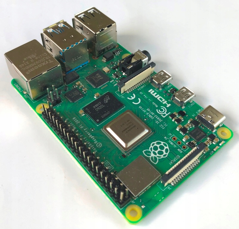 - mikrokomputer Raspberry Pi model 4B, 8 GB RAM - najnowsza odsłona popularnego minikomputera z 64-bitowym procesorem 1,5 GHz, z wbudowanym moduł WiFi Dual Band i Bluetooth 5.0;