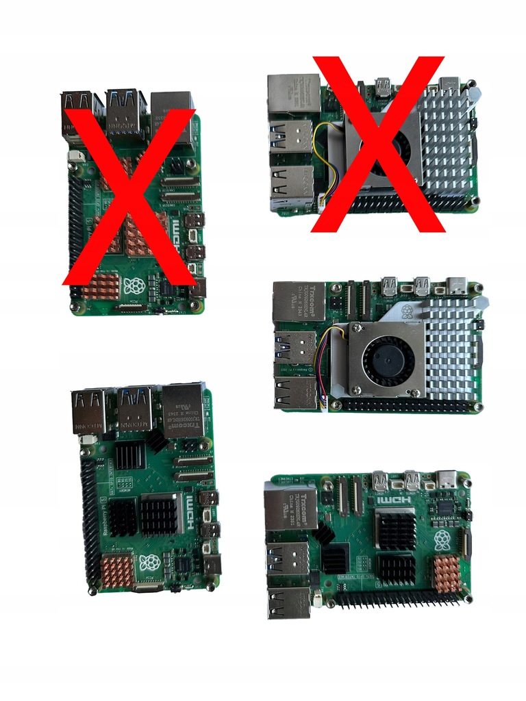 - Zasilanie 5 V/5 A DC przez USB-C.