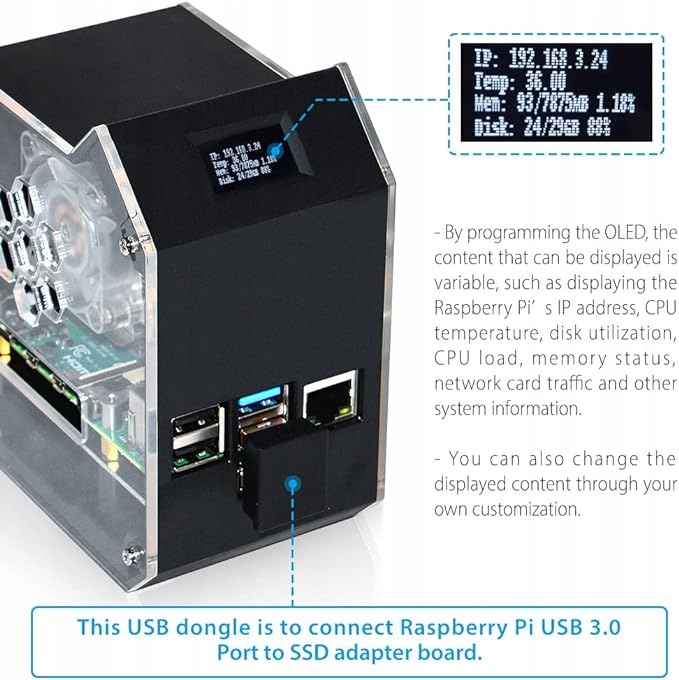 - UWAGA: Światło RGB w wentylatorze i nastrojowe światło zaświeci się tylko wtedy, gdy sterownik jest zainstalowany, a OLED nie wyświetli żadnych informacji, dopóki go nie włączysz!!! Przeczytaj uważnie instrukcję obsługi i postępuj zgodnie z instrukcjami, aby ją włączyć. Proszę kupić urządzenie pamięci masowej M.2 SATA SSD 2280, nie obsługuje NVME SSD! !