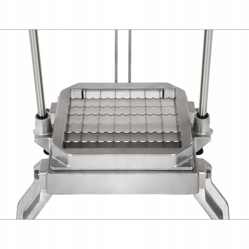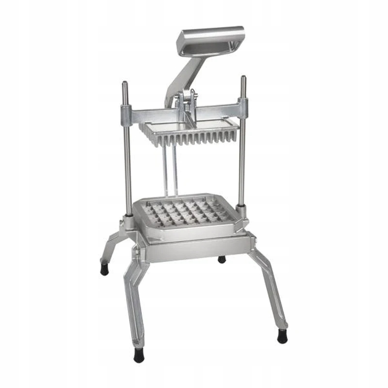 Nazwa : RCGT-2 Profesjonalna, ręczna krajalnica wykonana w całości ze stali służąca do szybkiego krojenia owoców oraz warzyw na równe kostki o wymiarach 2,5x2,5cm.Urządzenie jest niezbędnym wyposażeniem każdej profesjonalnej kuchni Znacznie przyśpiesza przygotowanie potraw i podnosi jakość produktu.Urządzenie posiada kratkę krojącą o wymiarach 17,5x17,5cm na której kładzie się produkt a następnie jednym ruchem zostaje cały poszatkowany.W podstawie urządzenia znajdują się gumowe stopki amortyzujące i chroniące urządzenie przed przesuwaniem i polepszające komfort pracy. Cechy i funkcje: