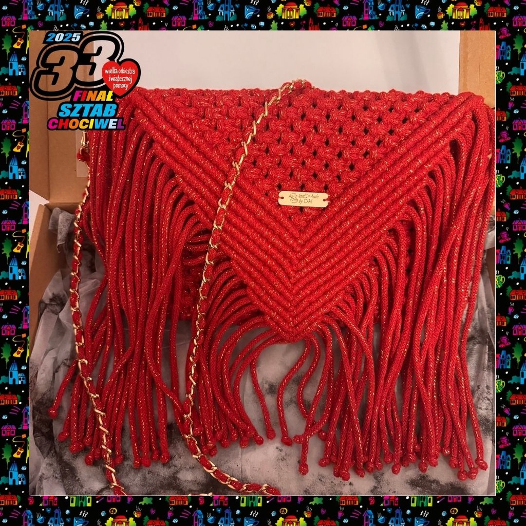 Torebka jest tworzona z sercem, dzięki czemu każdy egzemplarz jest unikatowy. Kupując tę torebkę, nie tylko zyskujesz wyjątkowy dodatek do swojej garderoby, ale również wspierasz lokalne rękodzieło i Wielką Orkiestrę Świątecznej Pomocy.