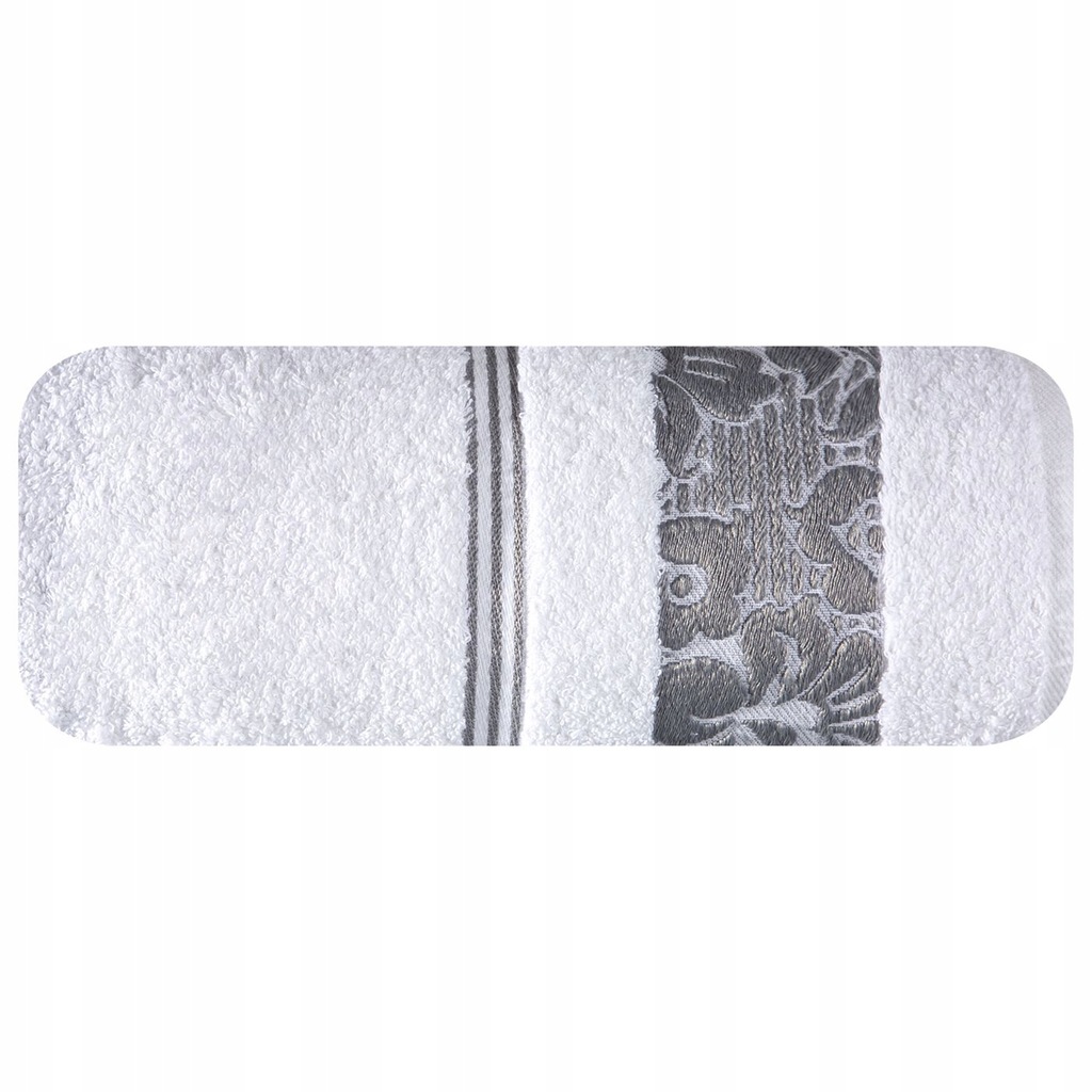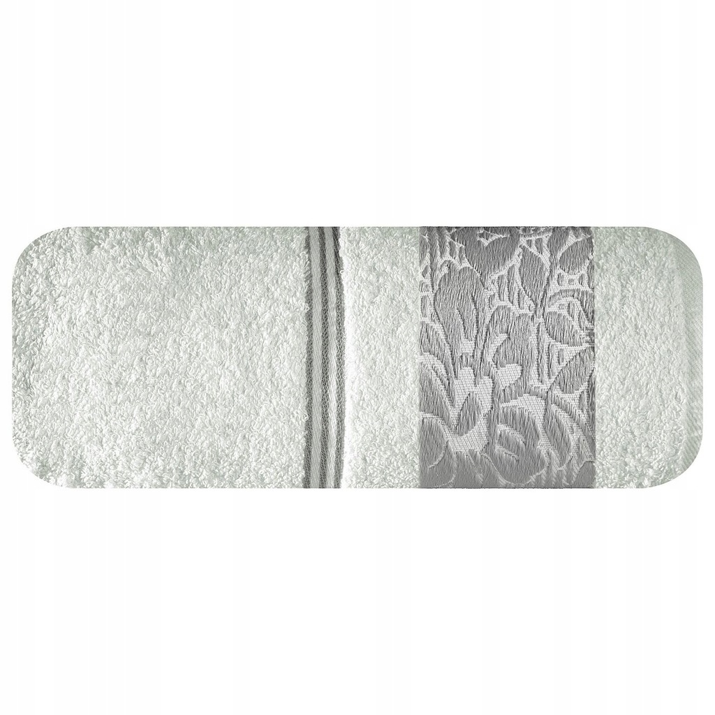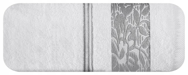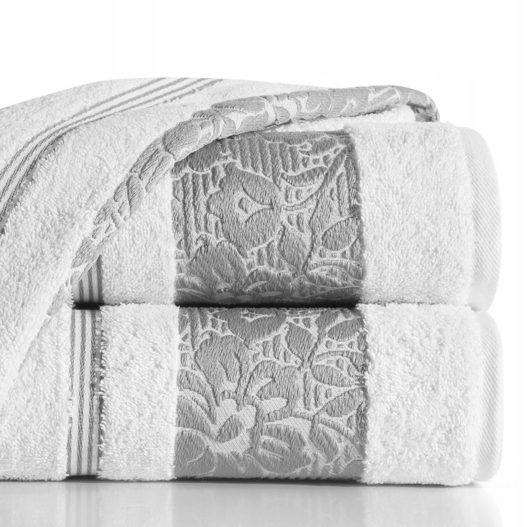 Elegancki ręcznik kąpielowy z miękkiej i chłonnej bawełny frotte zdobiony żakardową bordiurą z kwiatowym wzorem w dopasowanym kolorze. Bardzo miękki i przyjemny szerokość: 70 cm, długość: 140 cm, kolor: biały, Gramatura: 500 GSM, Skład: 100% bawełna; część ozdobna: 70% poliester, 30% bawełna