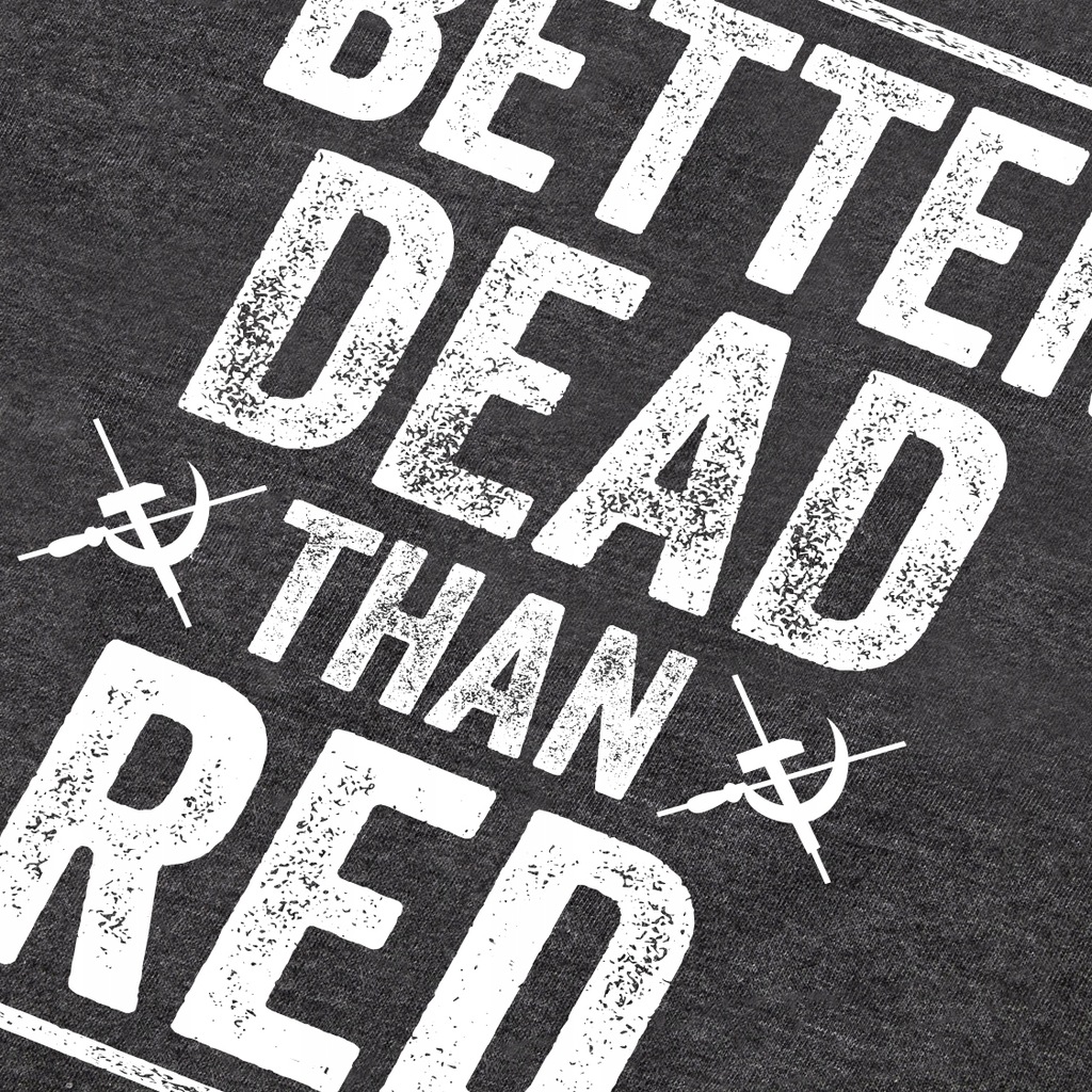 Koszulka z międzynarodowym antykomunistycznym hasłem "Better Dead Than Red" ("Lepiej być martwym niż czerwonym").