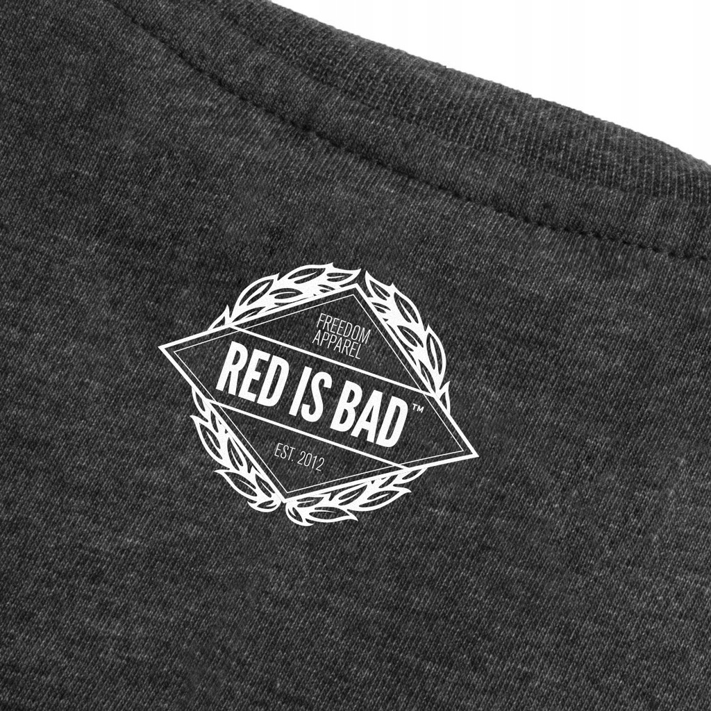 Na karczku nadruk - logo Red Is Bad.