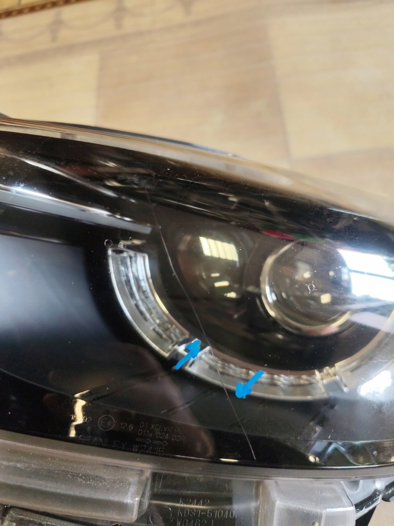 REFLEKTOR LEWY MAZDA CX5 2012-2017 ROK NR ORYGINAŁU K031-51040 UWAGA RYSA NA SZKLE ZDJĘCIE NR 14 WSZYSTKIE UCHWYTY CAŁE NIE KLEJONE