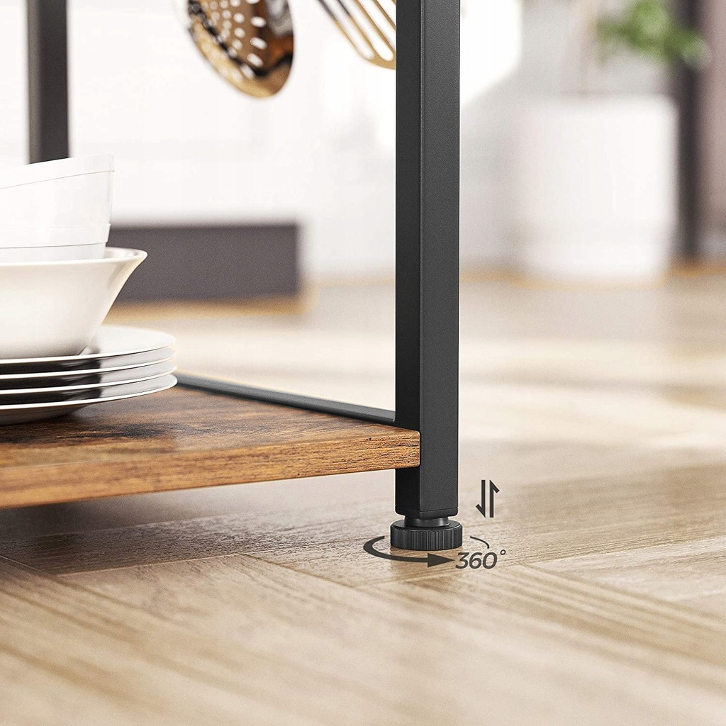 - W zestawie otrzymasz: 4 półki do przechowywania z blatem, kosz druciany, 6 haczyków w kształcie litery S, górna półka, regulowane nóżki, ponumerowane elementy i łatwe do wykonania instrukcje montażu