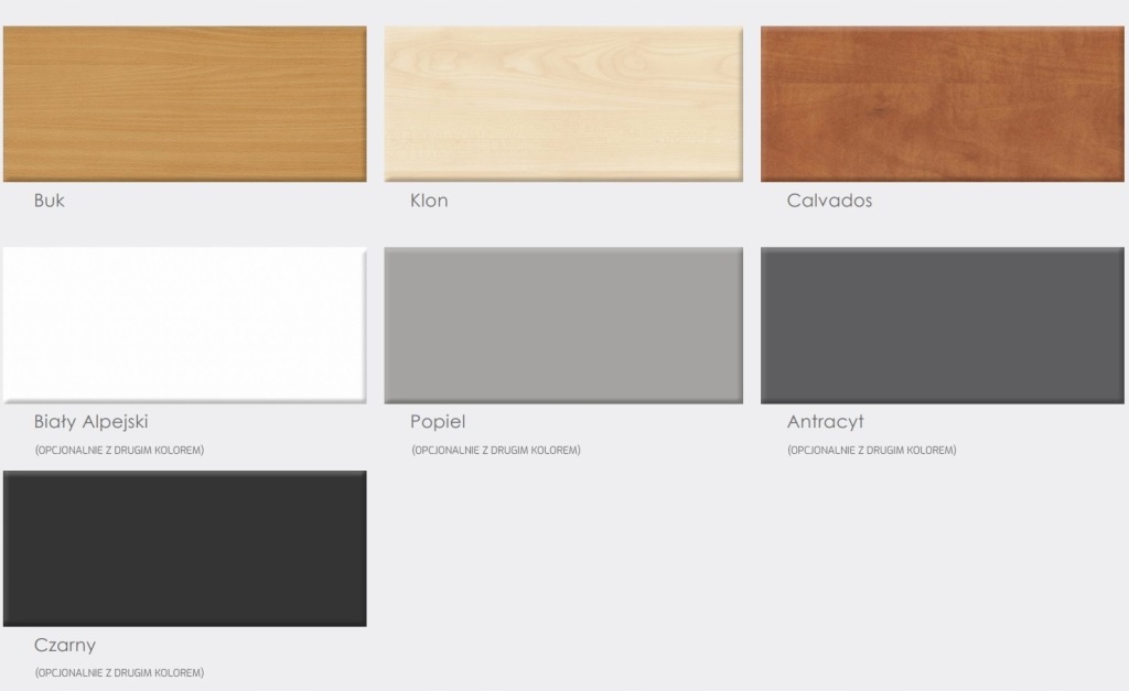 Meble w pozostałych kolorach można zamówić w całości w jednym kolorze lub w połączeniu z innym: