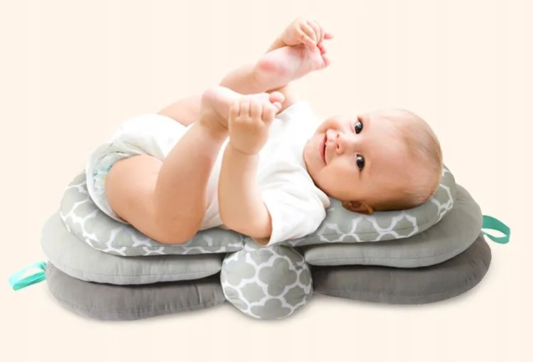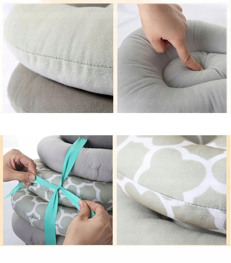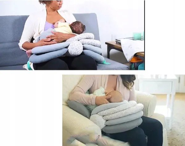 Poduszka posiada po 3 listki z każdej strony, listki możemy przekładać ze strony na stronę regulując kąt nachylenia główki. Dzięki temu Twoje dziecko będzie jadło w pozycji w której nie nałyka się powietrza i nie będzie mu się ulewało. Jest to jedyna poduszka, którą możesz płasko trzymać na kolanach nie podkładając pod nią rąk aby podwyższyć główkę dziecka. Można tak ją ustawić, ze dziecko będzie miało idealnie główkę na wysokości piersi i możemy karmić nawet nie używając rąk.