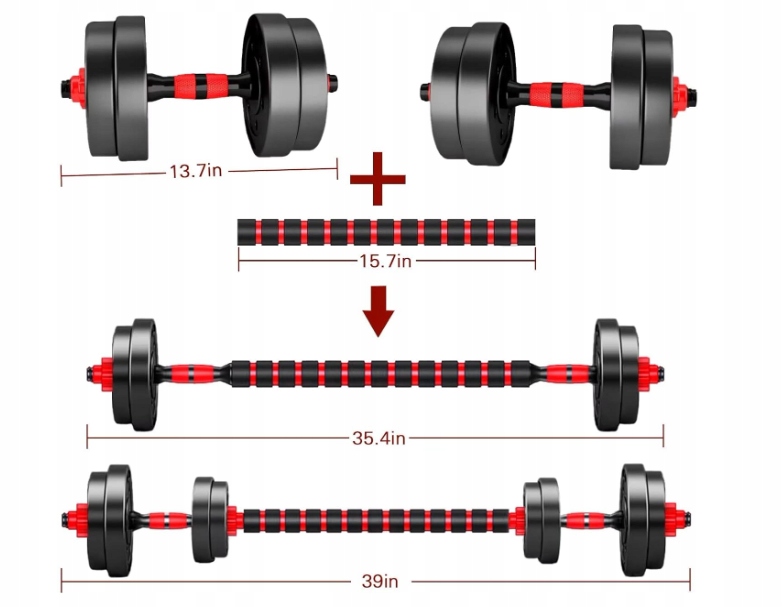 - [Ćwiczenia wszechstronne]: Możesz nie tylko łączyć różne ciężary, ale także łączyć pręt z prętem. Za pomocą hantli możesz wzmocnić mięśnie ramion, barków, klatki piersiowej, brzucha, pleców i nóg. Bardzo nadaje się do treningu siłowego, kulturystyki, fitness lub gimnastyki.
