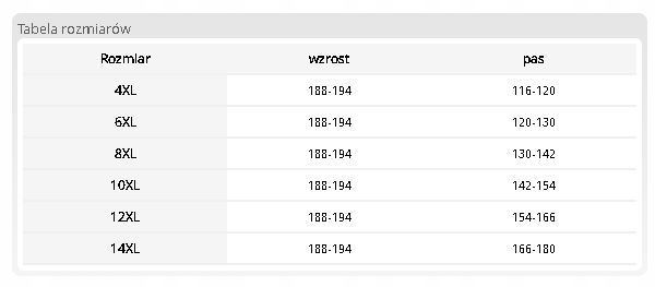 - Rozmiar, wzrost, pas