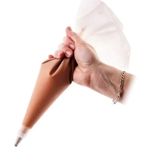 ✅ WYTRZYMAŁY - Worek cukierniczy wykonany w całości z silikonu w kolorze białym. Jest elastyczny, co pozwala na precyzyjne aplikowanie dekoracji.