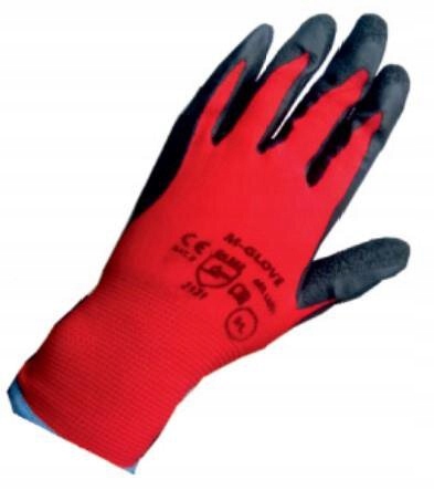 CECHY PRODUKTU Rękawiczki ogrodowe dziane powlekane lateksem czerwono-czarne rozm. 8